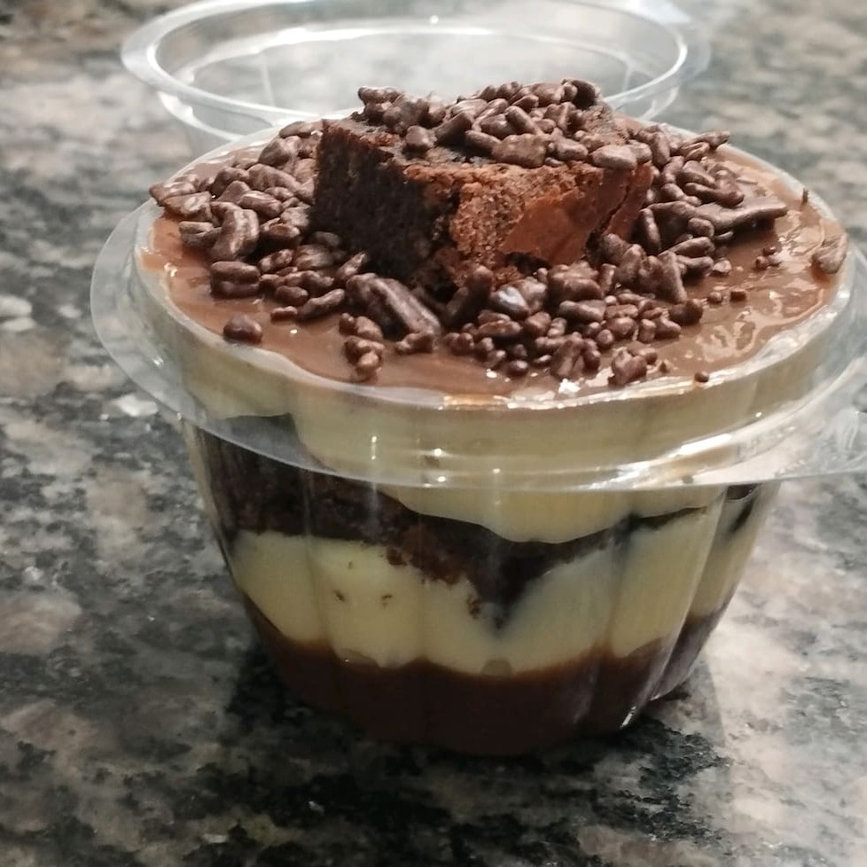 Para os amantes de chocolate, um copo de 150 ml composto por mousse de chocolate, pedaços de brownie e o saboroso brigadeiro gourmet de chocolate.