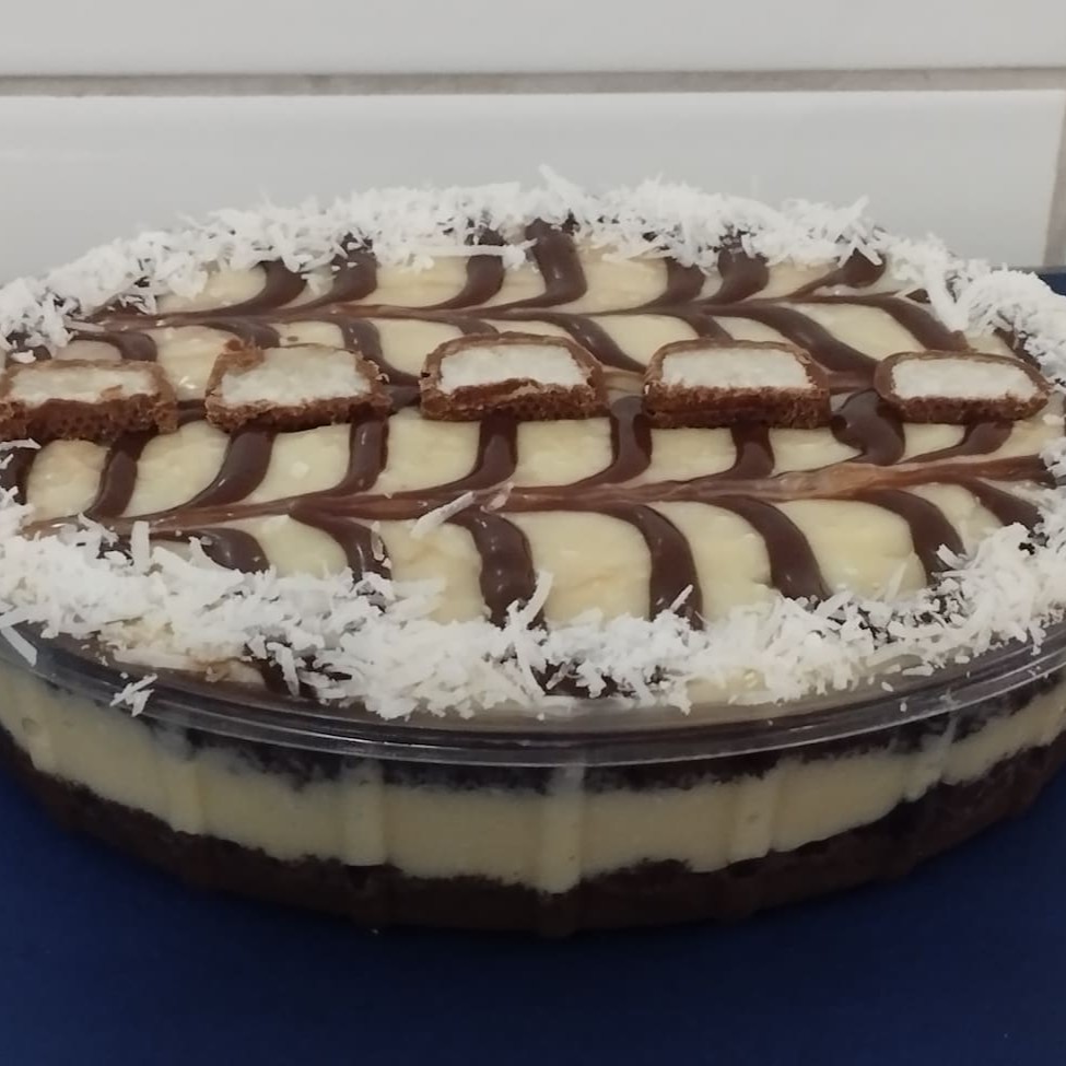 Exquisite Bolo Prestígio, perfeitamente situado na categoria de 'Bolos Com Coberturas'. Este é um bolo de chocolate caseiro de extrema suavidade, com uma textura tão leve e fofinha que irá derreter na sua boca. A coroa de glória desta criação de dar água na boca é a sua luxuosa cobertura de Prestígio. Uma combinação de coco ralado e chocolate de alta qualidade que transforma este bolo numa obra de