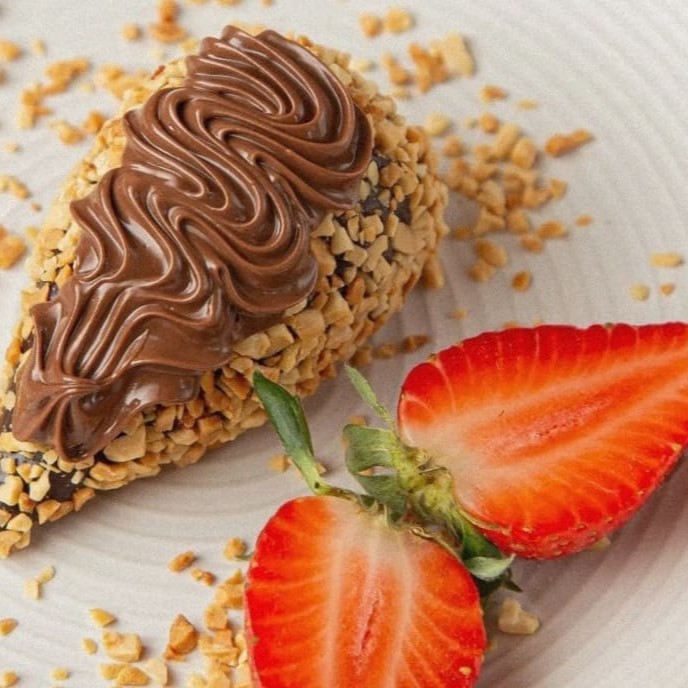 Descubra a irresistível 'Coxinha Ferrero', uma sobremesa individual única. Prove o saboroso morango, cuidadosamente envolvido por um sofisticado brigadeiro gourmet de chocolate. Em seguida, ele é generosamente passado no amendoim crocante, adicionando uma textura intrigante e deliciosa. Finalmente, a iguaria é finalizada com uma cobertura decadente de Nutella, intensificando a experiência do choco