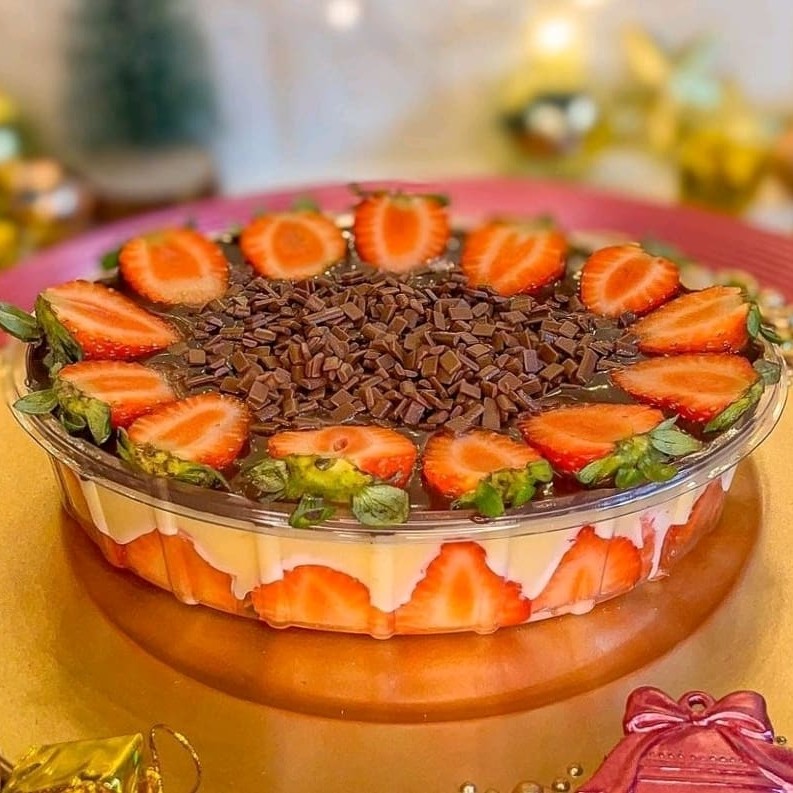 Saboreie a nossa Torta de Morango, uma delícia que serve até 8 pessoas. Ela é preparada com uma base de torta amanteigada irresistivelmente crocante, recheada com um sofisticado brigadeiro gourmet de leite Ninho, que proporciona uma experiência cremosa e suave. Os morangos frescos, cuidadosamente selecionados, adicionam um toque de acidez e doçura natural, revestidos com uma brilhante geléia que i
