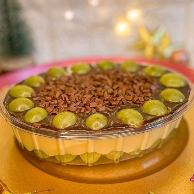 A 'Torta de Uvas Verdes' é uma irresistível combinação de sabores e texturas. A base da torta é feita com uma massa amanteigada, leve e crocante, que dá o suporte perfeito para o recheio. Este é composto por um luxuoso brigadeiro gourmet de Leite Ninho, que oferece um sabor incrivelmente rico e sedutor. Para finalizar, uvas verdes frescas e crocantes são cuidadosamente distribuídas e polvilhadas c