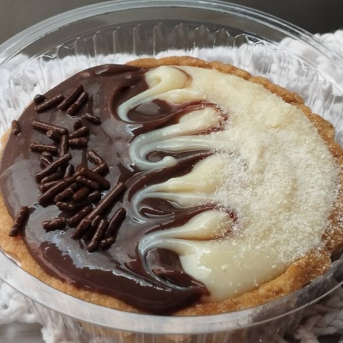 A Torta Banoffee, uma verdadeira delícia da categoria 'Tortas', serve generosamente até 8 fatias. Este prato sofisticado e irresistível apresenta uma base levemente amanteigada, que proporciona uma textura única e aconchegante. O coração da torta é recheado com um sublime doce de leite, cremoso e indulgente, que se funde harmoniosamente com pedaços de bananas frescas, trazendo um sabor tropical e vibrante. Para finalizar, uma camada de chantilly leve e aerado é delicadamente espalhada por cima, com um toque sutil de canela que adiciona um aroma especial e uma pitada de especiarias. Uma verdadeira celebração de sabores e texturas que encanta paladares.