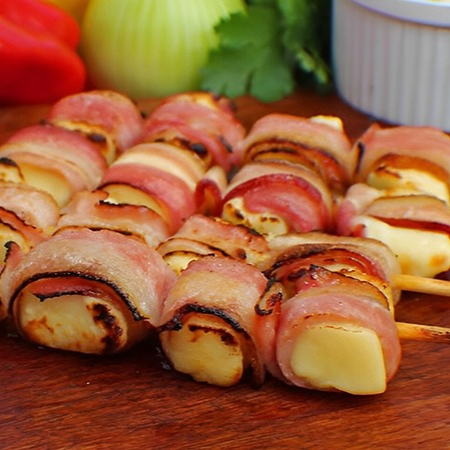 Espeto de queijo coalho grelhado na brasa com deliciosa goiabada derretida. Combinação perfeita do doce com salgado.
