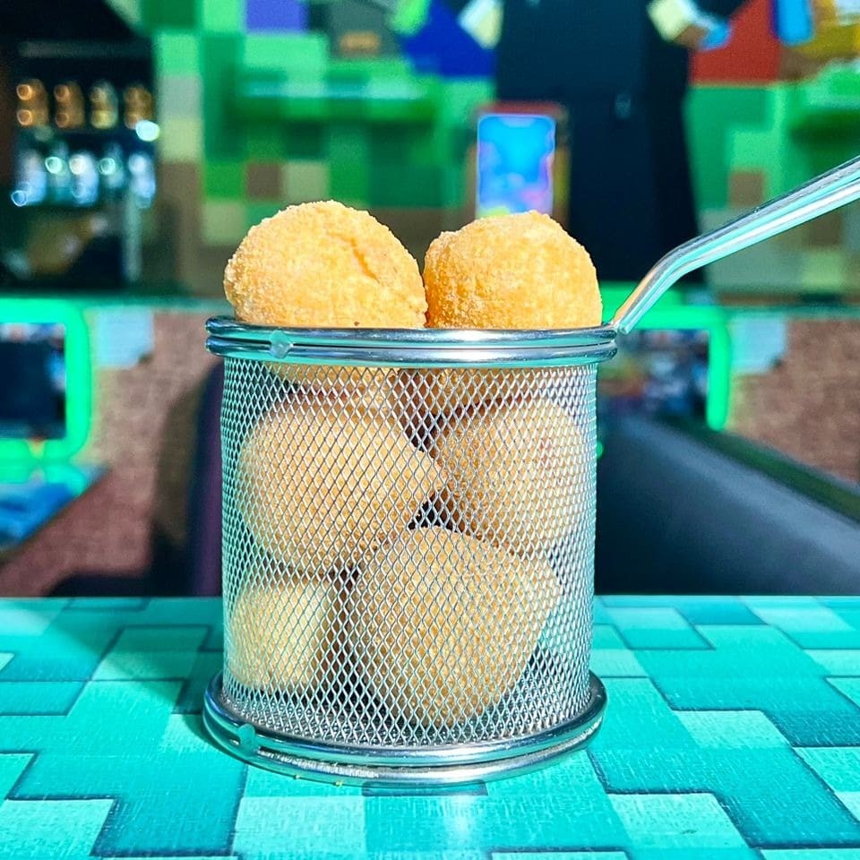 A Caixa acompanha uma generosa porção de bolinhos de Carne angus fritos, regado a cheddar e bacon, e cebolinha para dar o toque final. 4 deliciosas metades de mini lanches, no pão brioche, hamburguer feito de carne angus, com cheddar, ketchup e maionese da casa.