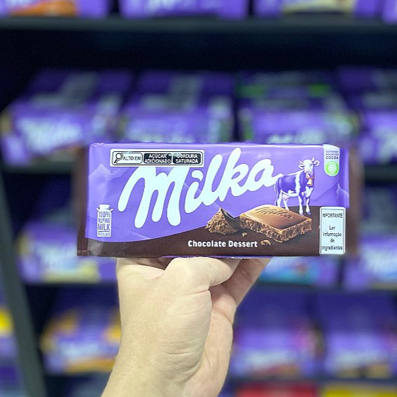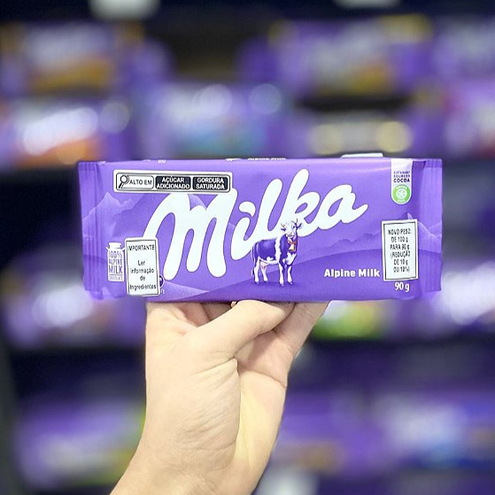 Barra de Chocolate ao leite Suiço. A mais tradicional das barras milkas, para os amantes do puro chocolate ao leite Suiço.