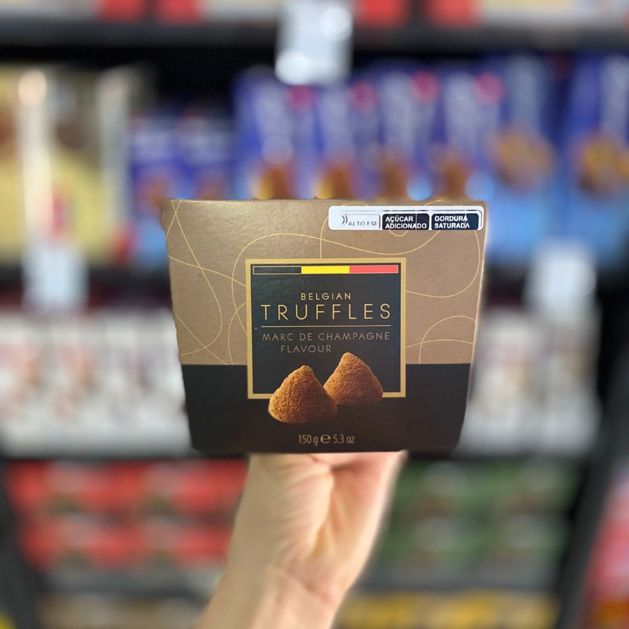 Caixa com Trufas de Chocolate Belga no sabor Champagne coberto com Cacau em Pó 150g