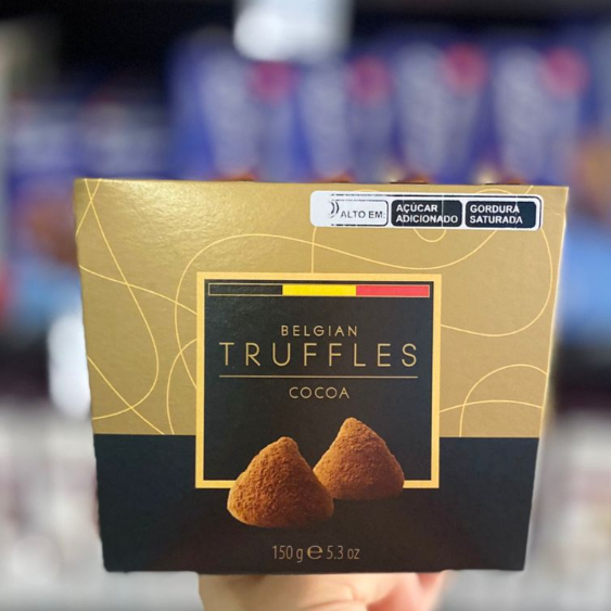 Caixa com Trufas de Chocolate Belga no sabor Chocolate ao leite coberto com Cacau em Pó 150g