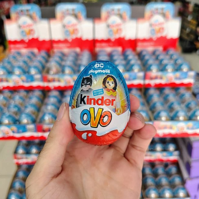 Delicioso kinder ovo com surpresa dos personagens da DC em formato de Playmobil ( Até 16 personagens colecionaveis)