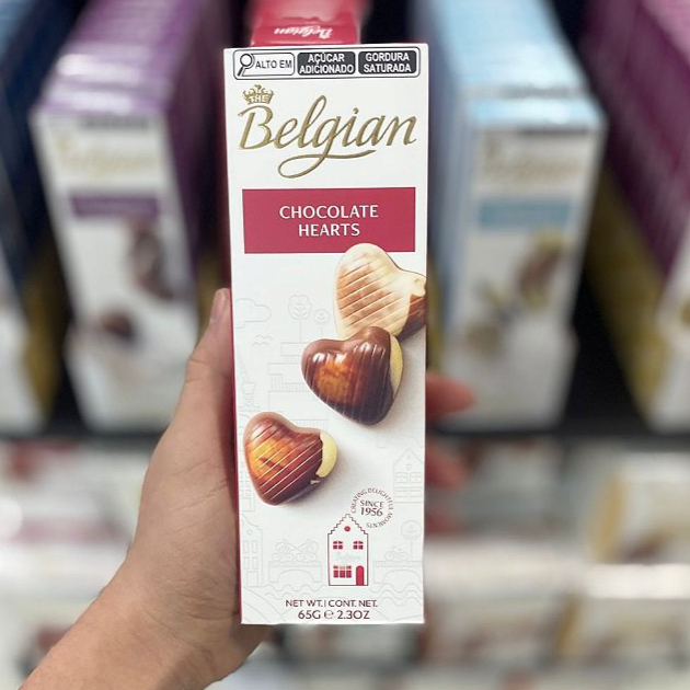 Bombons de chocolate belga no formato de coração 65g