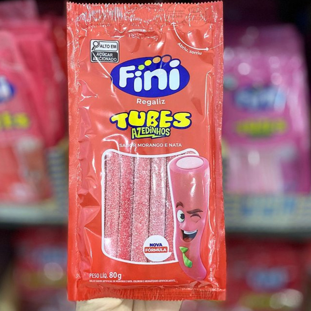 Bala Fini Tubes Morango Azedinho 80g