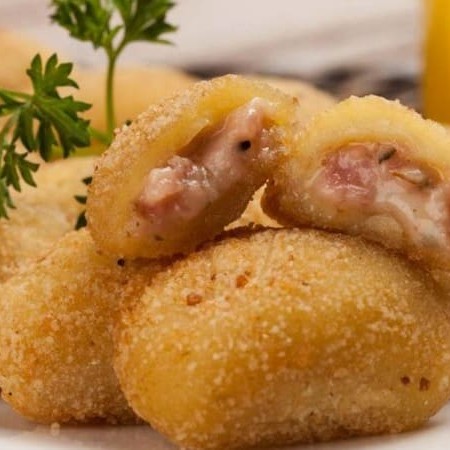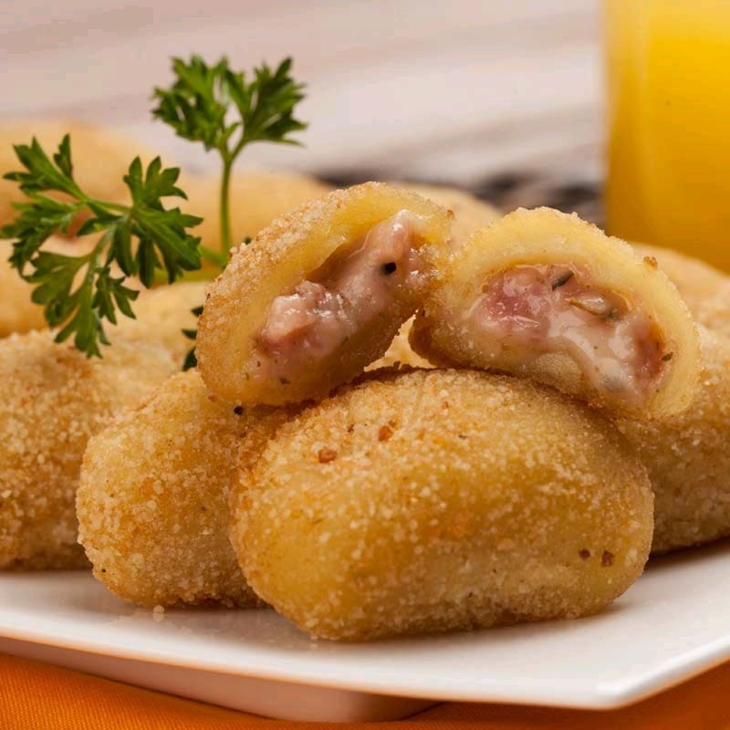 Deliciosos minis risoles de queijo e presunto 12 unidades