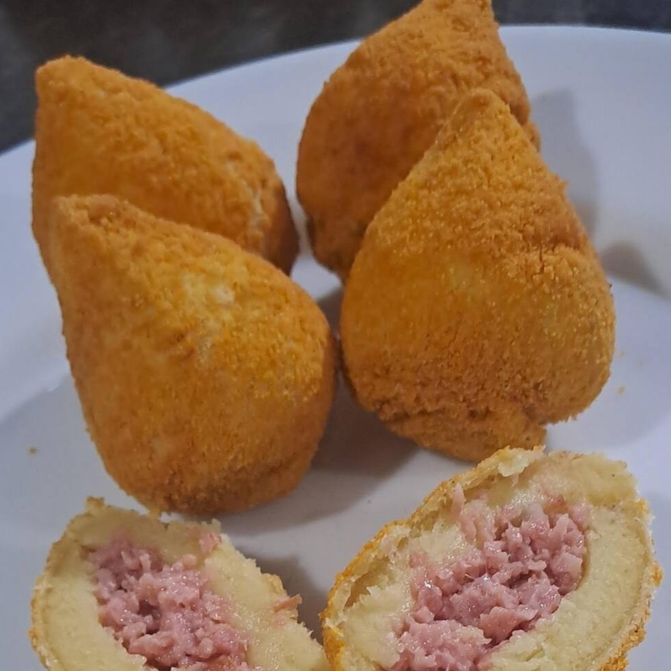 12 unidades de mini coxinhas recheio calabresa