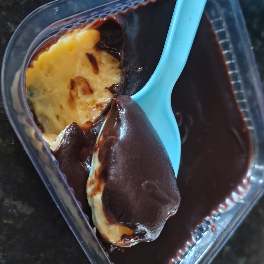 deliciosa casquinha banhada no chocolate com um creme incrível de ninho e creme de avelã