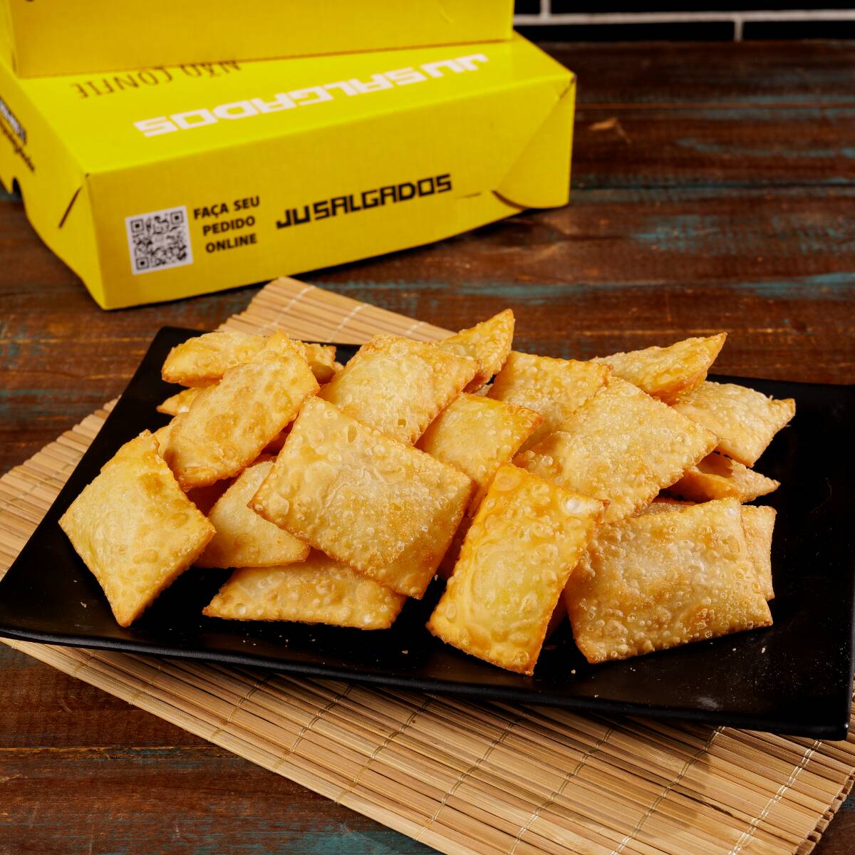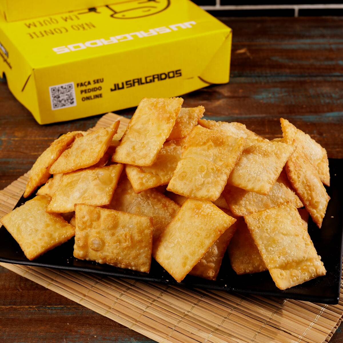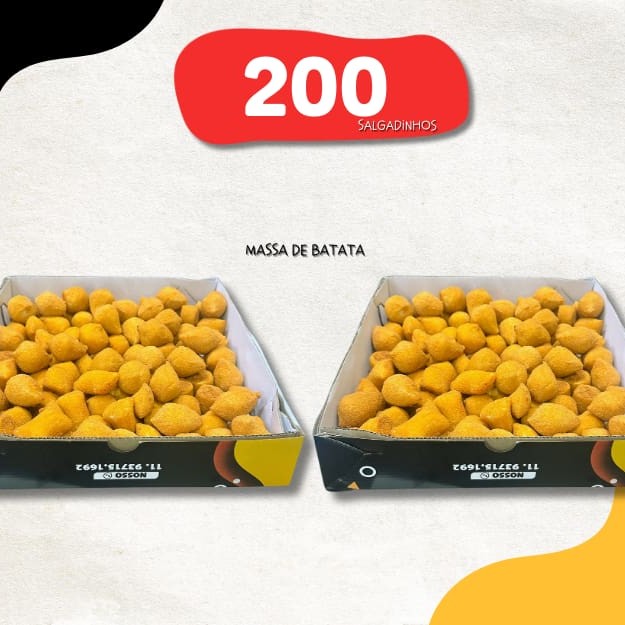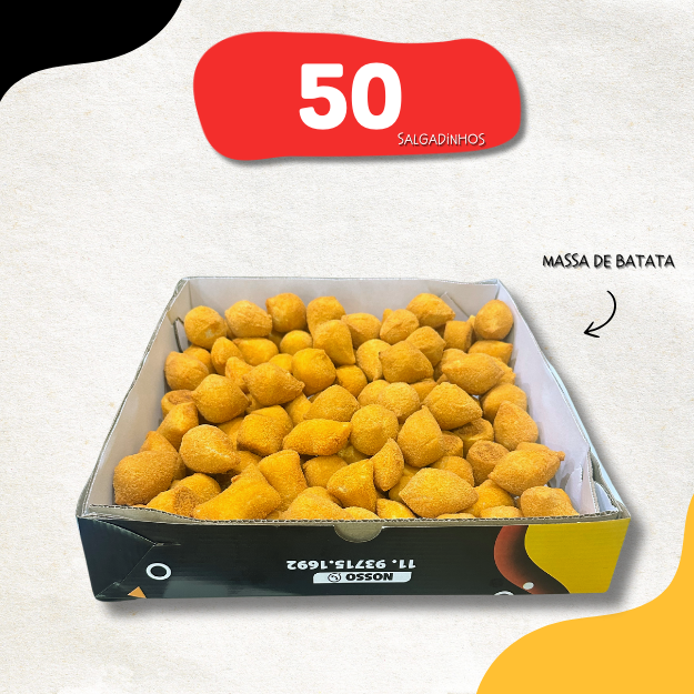 Todos nossos salgadinhos são feito com massa de batata e com os melhores produtos do mercado, muito crocantes e sequinhos.