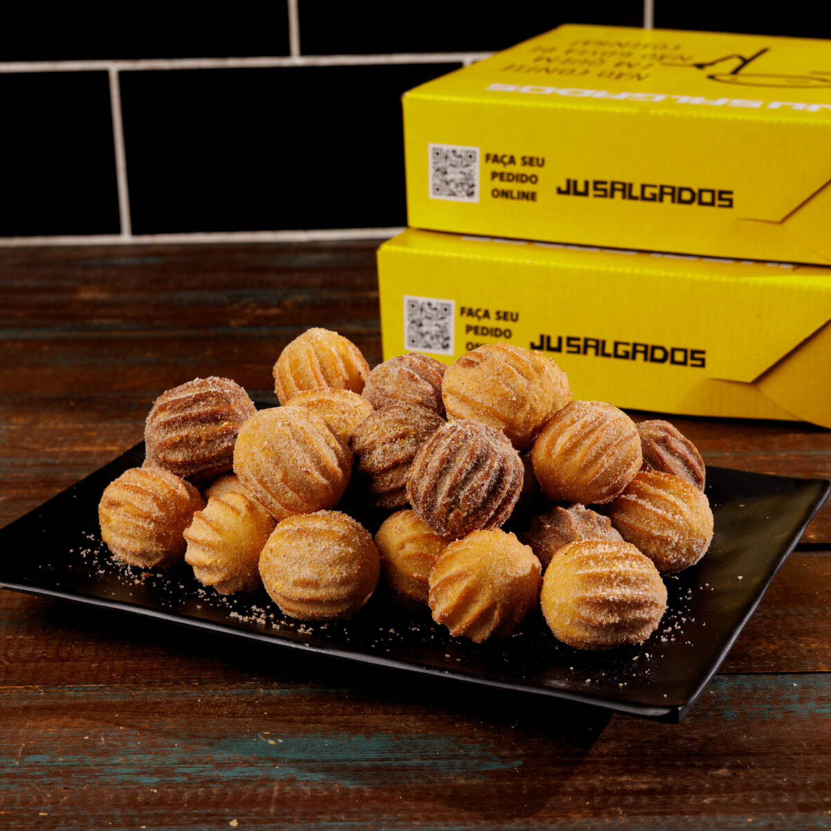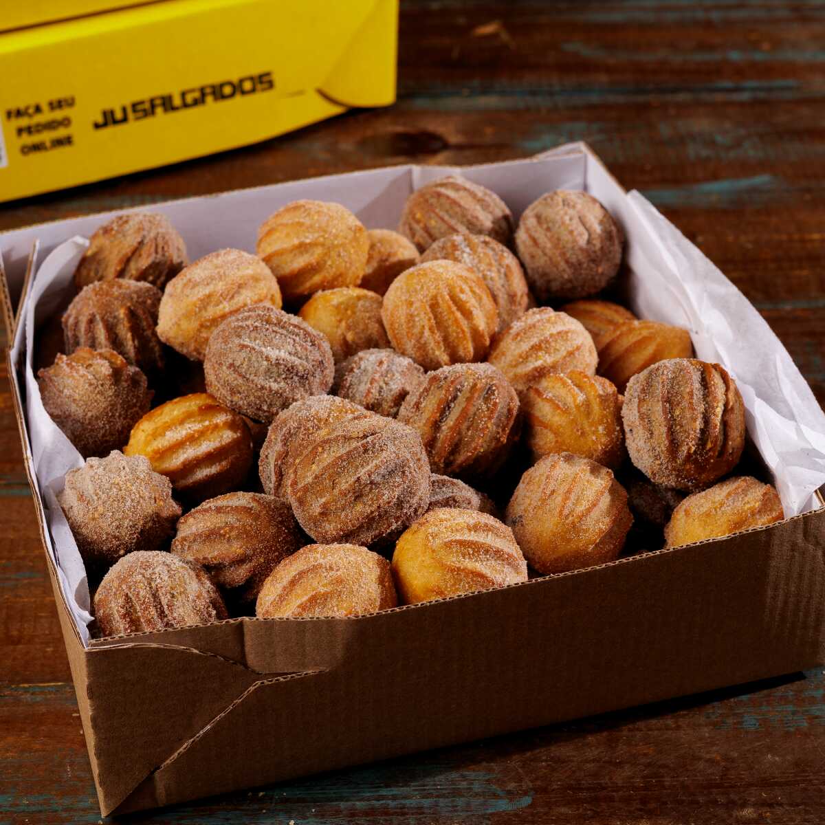 O combo perfeito! 25 Mini salgados de massa de batata sequinhos e saborosos + 25 mini churros douradinhos, polvilhados com açúcar e canela. Uma combinação irresistível de salgado e doce.