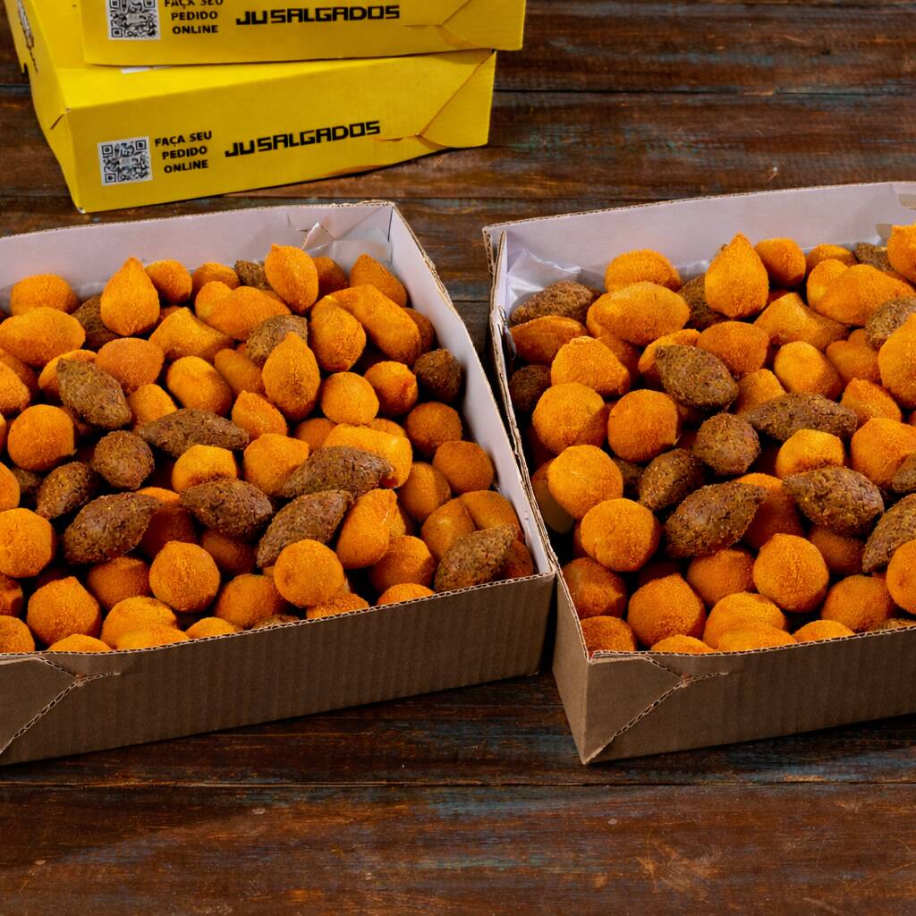 mini salgados feitos com deliciosa massa de batata, macios por dentro e crocantes por fora. Produzidos com ingredientes de qualidade, ideais para festas, reuniões ou para compartilhar com a família.
