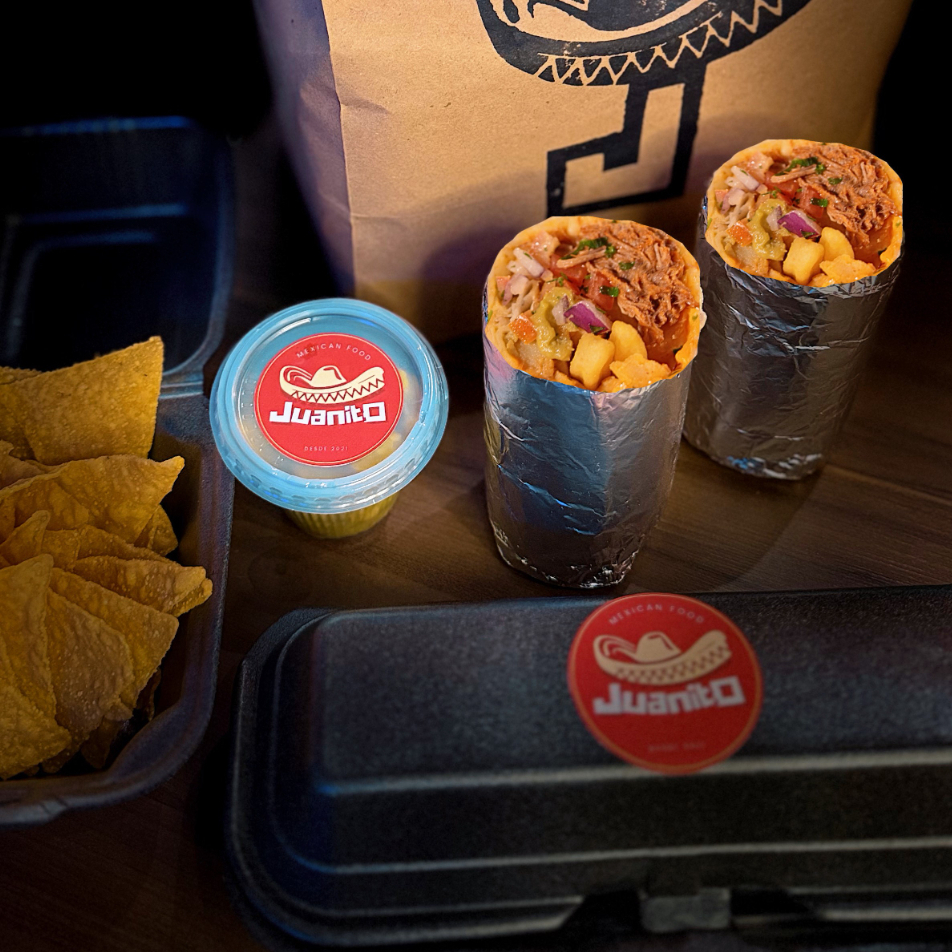 Combo Mega Burrito De Porco Desfiado + Nachos Com Molho + Bebida
