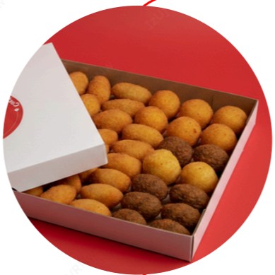 Um tantão de gostosuras para aquecer o coração e compartilhar sorrisos. Sabores (de ~20g): Coxinha, Kibe, Bolinho de Queijo, Bolinho de Carne, ou aquele Risole de Presunto e Queijo!