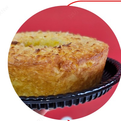 Um bolo cremoso de mandioca com gostinho autêntico de casa de vó.