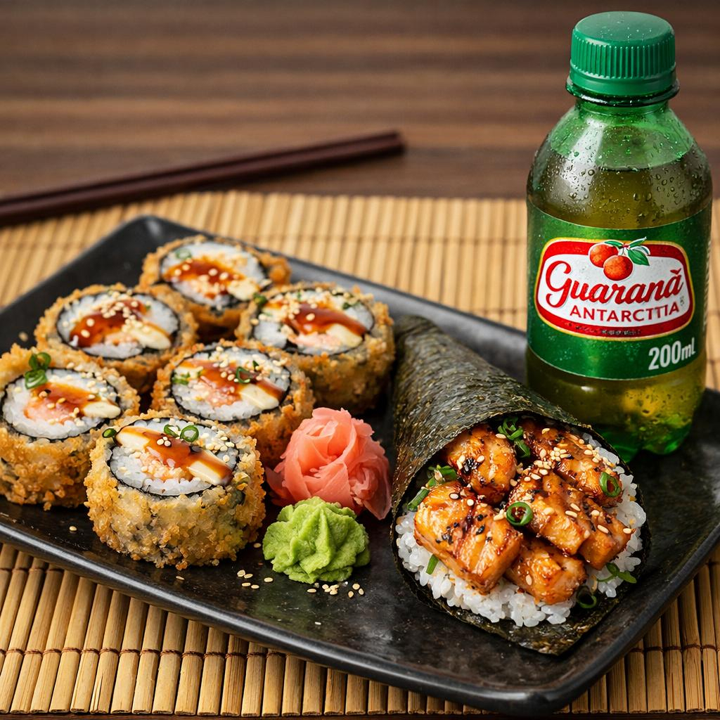 Temaki Salmão Grelhado Médio + Hot Roll 6 Unidades + Guaraná 200 Ml