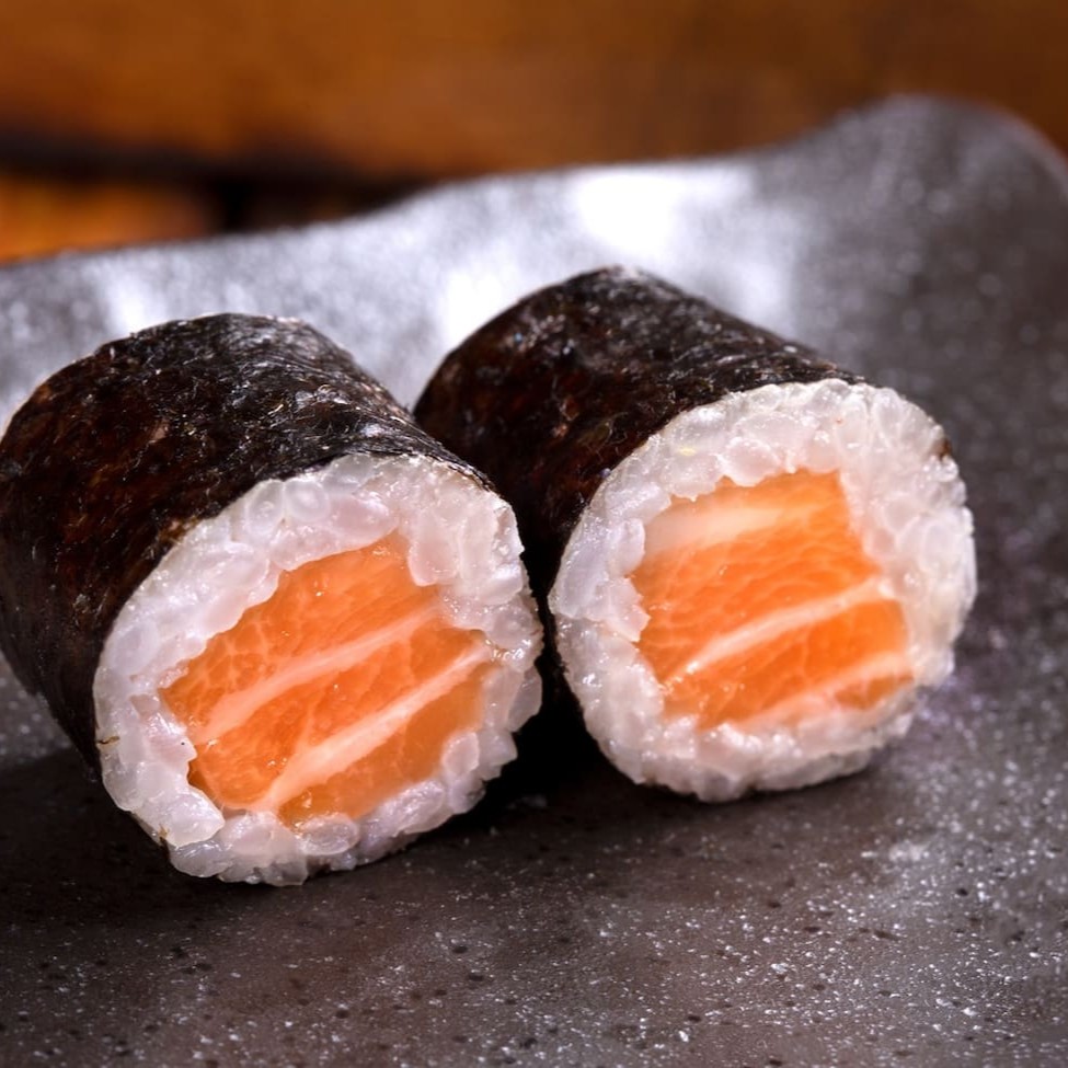 Temaki de salmão completo(180g) ou Temaki de salmão grelhado (180g) + hot roll kani 4 unid. Não acompanha hashi e sachês. Não fazemos temakis em cubos, nem sem arroz