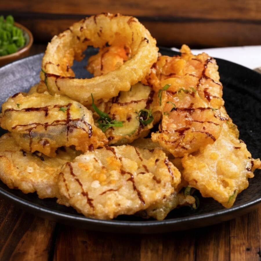 Uma massa leve sequinha e dourada, feita com farinha especial importada.O tempurá é um prato clássico da culinária japonesa- Legumes e Camarão Não acompanha kit!