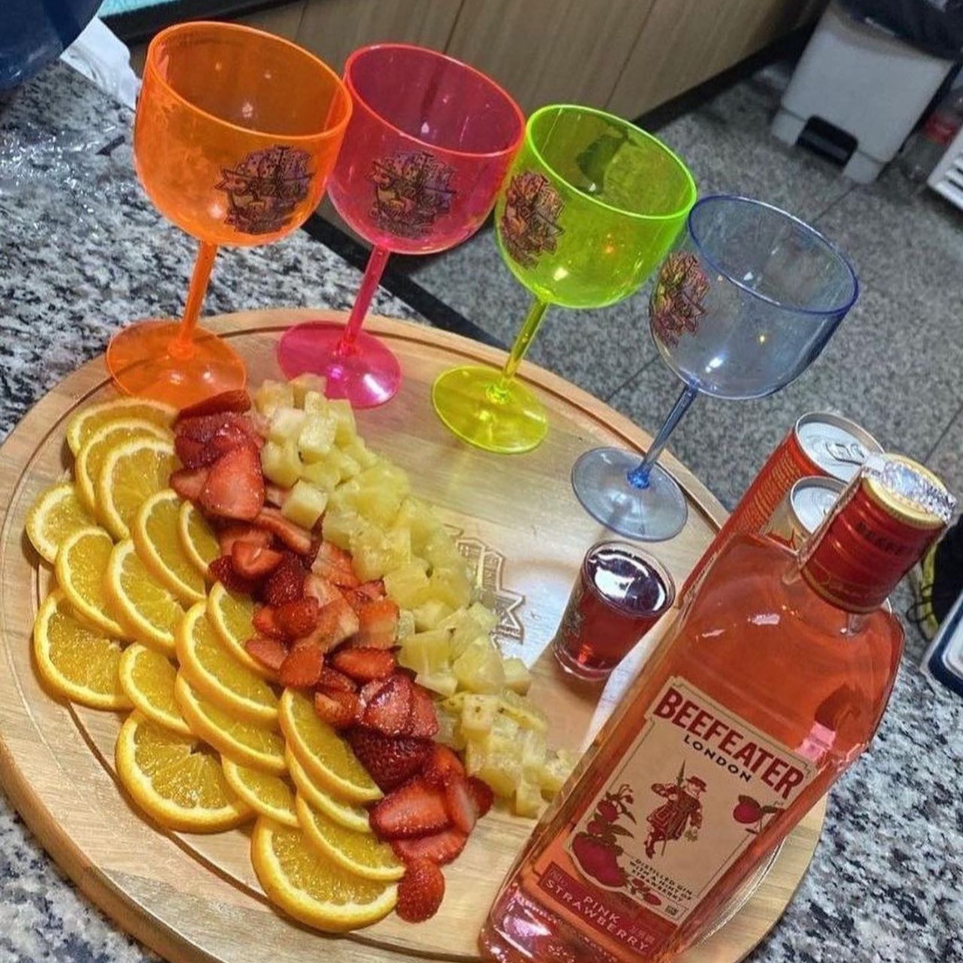 Gin Beefeater Pink + Red Bull + Gelo saborisado + Frutas + Xarope saborisado