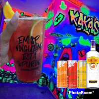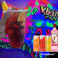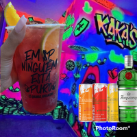 Gin Black Berry+ Red Bull + Gelo saborisado + Frutas + Xarope saborisado