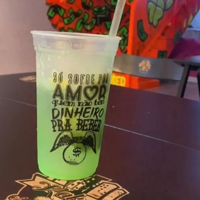 2 COPÃO DE 700 ML - SABORES MELANCIA, TROPICAL E MAÇÃ VERDE - Gin ethernity + gelo saborisado + energetico bally Obs : Já vem pronto
