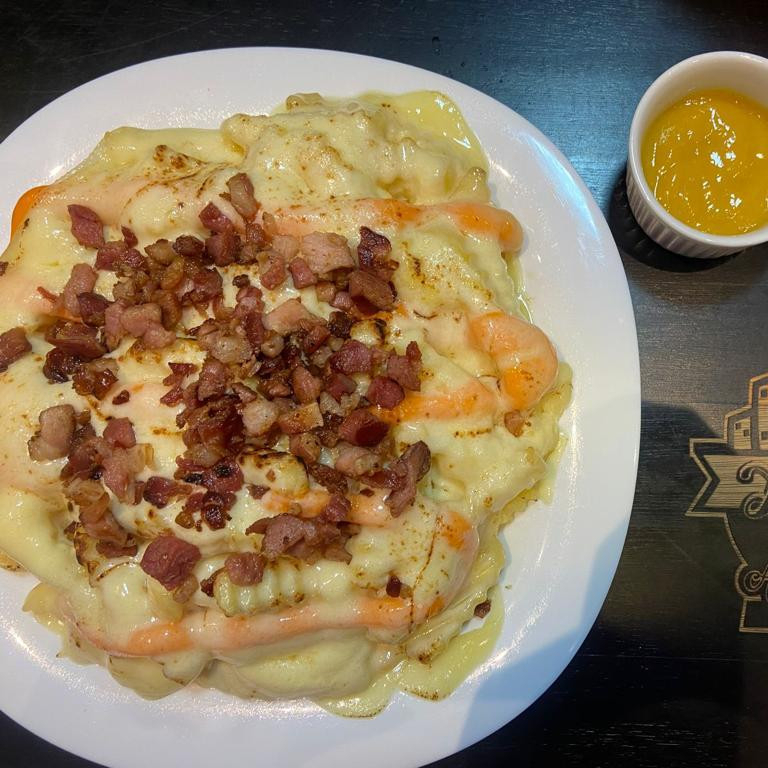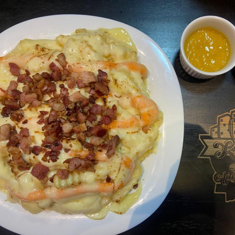 350 GRAMAS DE BATATA, BACON, CATUPIRY, CHEDDAR, KATCHUP, MOSTARDA E MAIONESE E MUSSARELA)