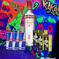 1 Garrafa de Sminorf 1 litro + 4 Red Bull saborisado + 4 gelo saborisado