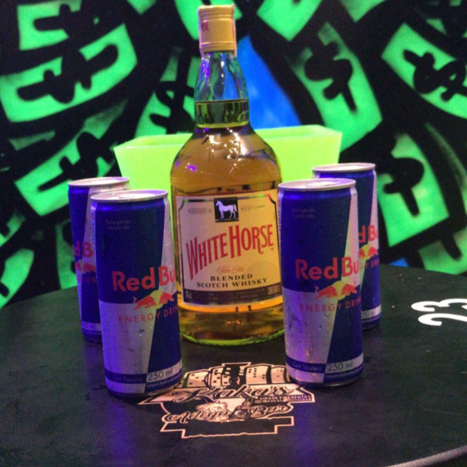 Combo de whisky White Horse + 4 gelo de coco + 4 Red Bull