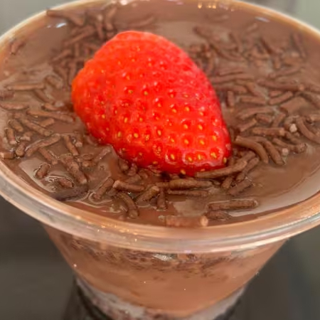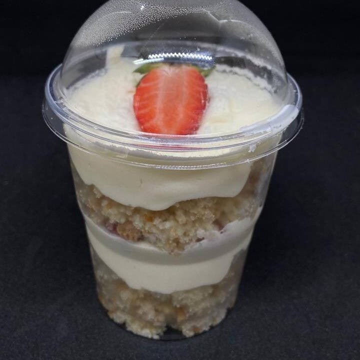 Delicioso bolo no pote com recheio de leite Ninho com morangos.