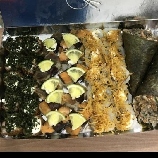 10 hossomaki de salmão / 10 hossomaki pepino/ 10 uramaki Skin com couve crispy / 5 Uramaki Skin com batata crispy/ 5 uramaki california/ 10 Kapamaki / 30 Hot Roll.