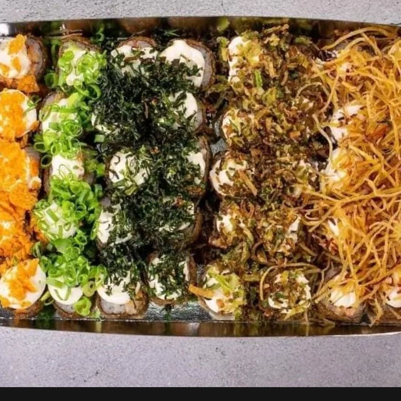 10 uramaki com Doritos, 10 uramaki com couve, 10 uramaki com batata, 10 uramaki com cream cheese