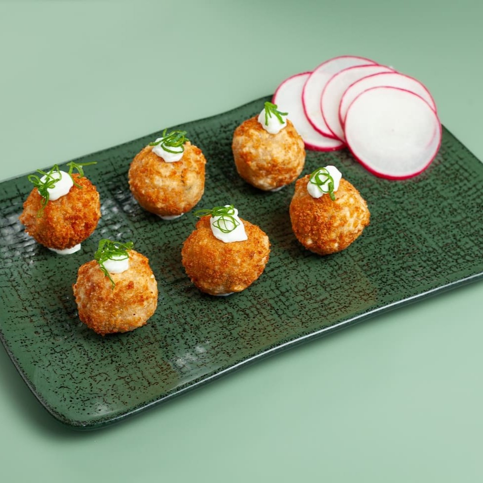 O clássico hot roll: salmão grelhado desfiado, enrolado em gohan e nori, e empanado com farinha panko