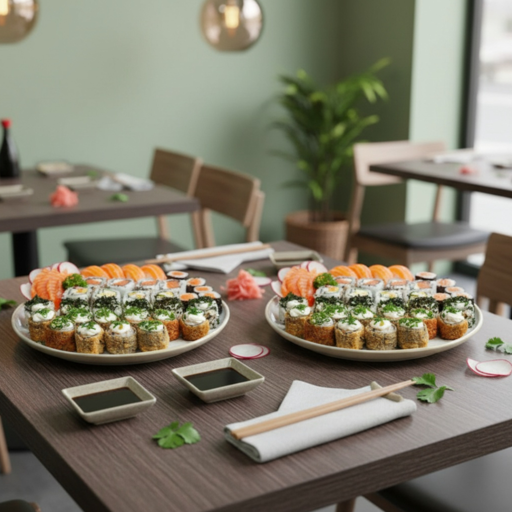 10 Hot holl 15 Hossomaki salmão 10 Hossomaki de Kani 5 Uramaki skin 5 Uramaki Califórnia 5 Uramaki salmão