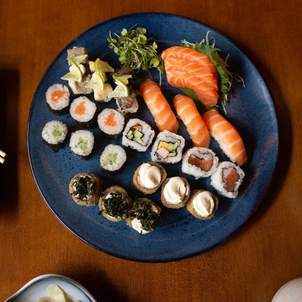 10 sashimi de salmão 10 sashimi de peixe branco 8 sashimi de atum 12 niguiri de salmão 4 niguiri skim 5 uramaki de salmão grelhado 5 salmão maki 5 capamaki 4 uramaki salmão 4 joy salmão 5 hot couve 8 hot roll 2 refrigerante lata