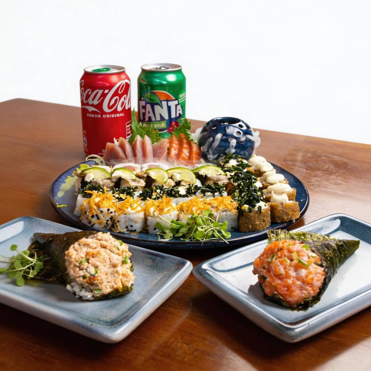 5 hot holl 5 niguri skin 5 uramaki skin 5 uramaki california 5 uramaki skin 5 hot couve 2 Temaki a sua escolha 2 Coca cola 350 ml Obs: Não acompanha shoyo, hashi, tare. Complementos cobrados a parte