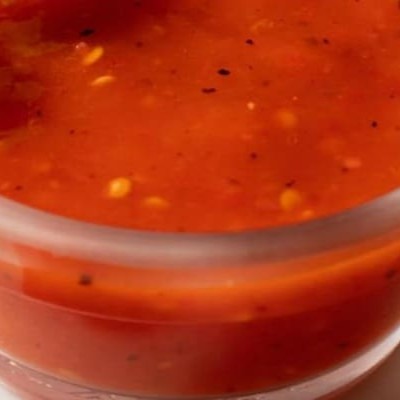 Enrolado de salmão com camarão finalizado com geleia de pimenta .