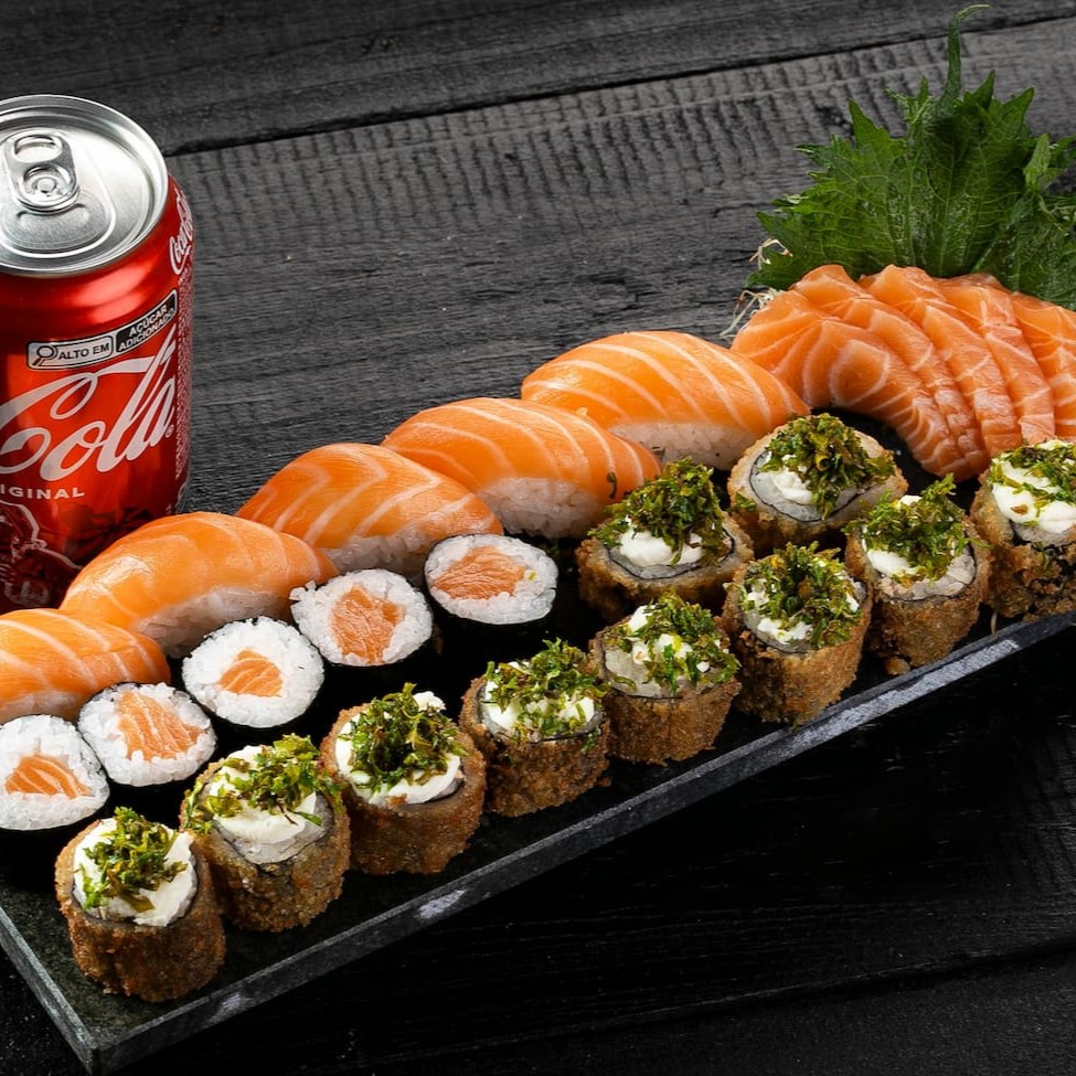 10 hot holl 5 sashimi de salmão 5 niguiri de salmão 5 hossomaki de salmão + 1 coca lata (sem alteração)