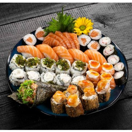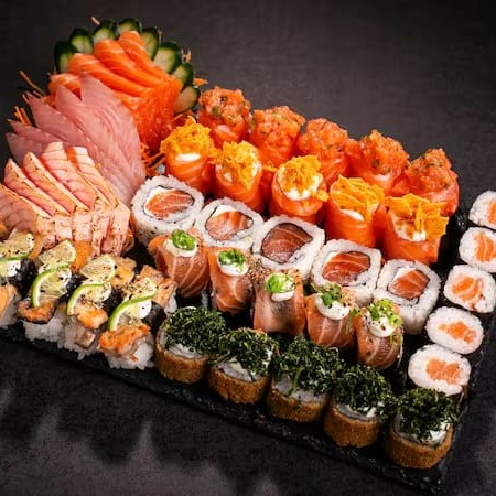 10 sashimi de salmão 5 niguiri de salmão 6 jhou de salmão 3 hossomaki de salmão 3 hossomaki de pepino 3 uramaki de salmão 3 uramaki de salmão grelhado 5 hot holl 2 temakis de salmão completos batidos (Sem Alteração) Deixe sua avaliação no sobre esse pedido, sua avaliação 5 estrelas vai nos ajudar bastante ;)
