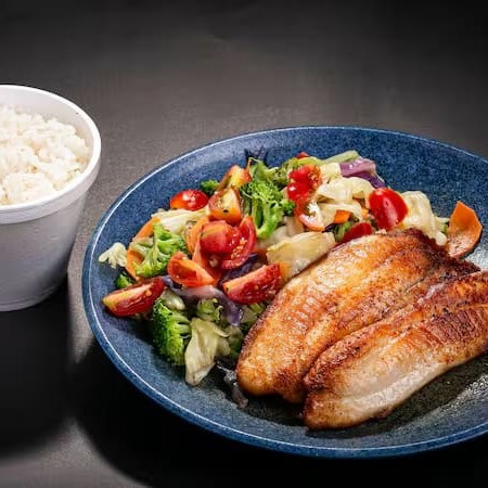 Tilápia grelhada acompanha legumes refogado e arroz japonês gorran !!