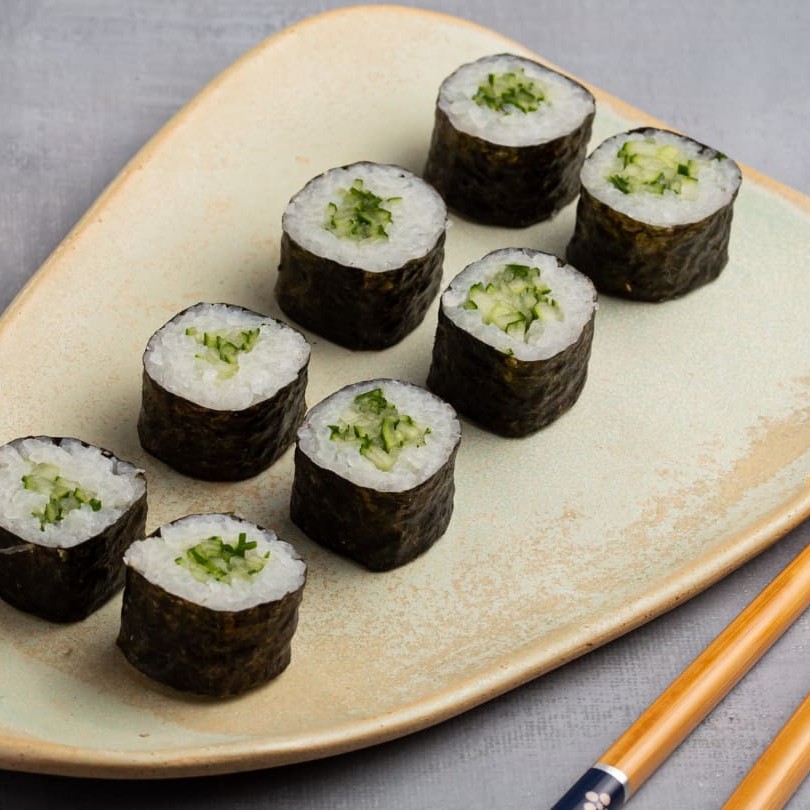 Desfrute de nosso prato clássico da culinária japonesa. Esta deliciosa porção de sushi, contém 8 unidades, perfeitamente enroladas em uma alga marinha fresca e crocante. No interior, desfrute do sabor refrescante do pepino, cortado com precisão, combinado com o arroz de sushi, meticulosamente preparado e temperado. Proporciona uma experiência culinária autêntica e inesquecível. Ideal para comparti