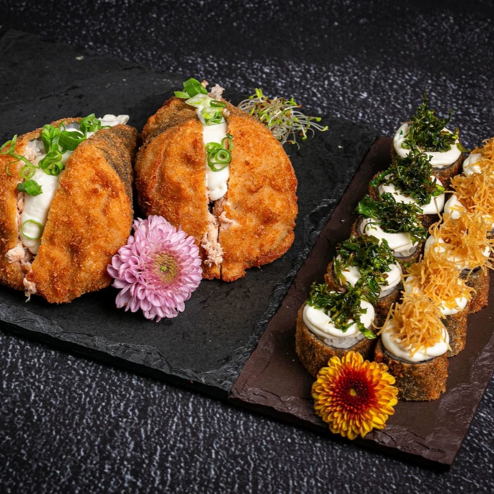 Delicie-se com a nossa porção de Bateramaki, composta por 08 unidades cuidadosamente elaboradas. Com duas camadas de arroz de sushi meticulosamente prensadas, contrastando com duas camadas de salmão fresco e suculento. O prato é habilmente complementado com creme de queijo cremoso e gergelim torrado, adicionando uma camada de textura e sabor.