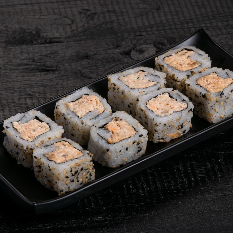 Salmão batido ou em cubos com maionese e cebolinha. Atenção! Sem alteração.... Deixe sua avaliaçao no app sobre este pedido, sua 5 estrela vai ajudar bastante;)