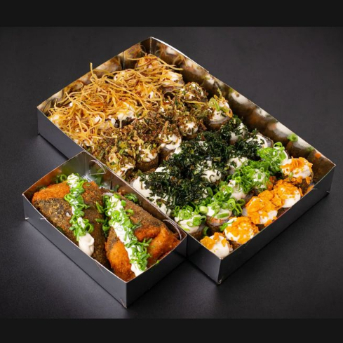 Laminas de salmão enrolado no shary, flambado no masarico. Atenção! Sem alteração.... Deixe sua avaliaçao no app sobre este pedido, sua 5 estrela vai ajudar bastante;)