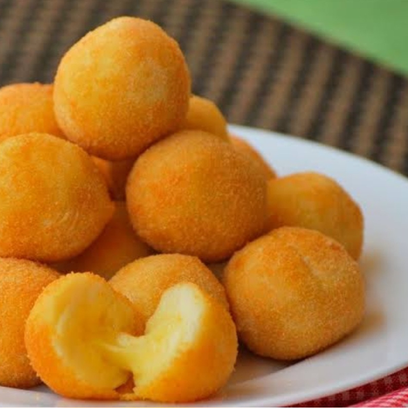 Bolinha de queijo feito com massa de batata macia e crocante por fora com um delicioso sabor