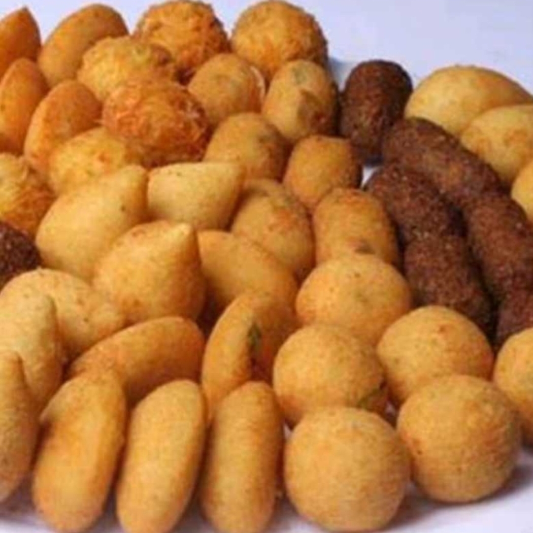 Coxinha, risoles de presunto e queijo, bolinha de queijo e kibe