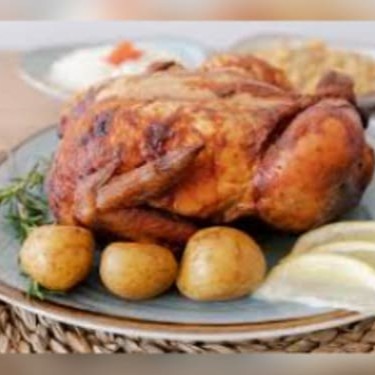 Frango douradinho, suculento e cheio de sabor, acompanhado de batatas assadas no ponto certo e farofa crocante! Uma combinação perfeita pra deixar seu domingo ainda mais gostoso!